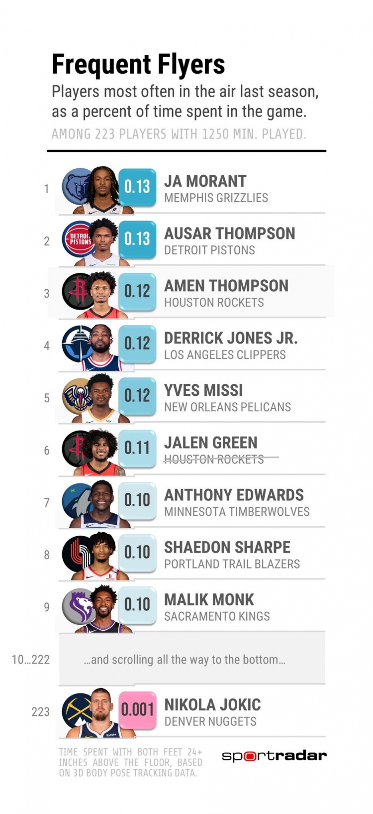 MK体育官网-上赛季滞空时间:莫兰特&汤普森兄弟前三 约基奇0.001%倒数第一