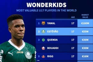 德转列17岁及以下球员身价榜:欧元