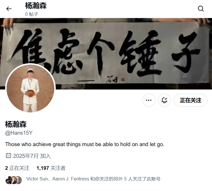 今天,开拓者跟队记者Casey Holdahl发推认证:“杨瀚森的官方推特账号是@Hans15Y。”