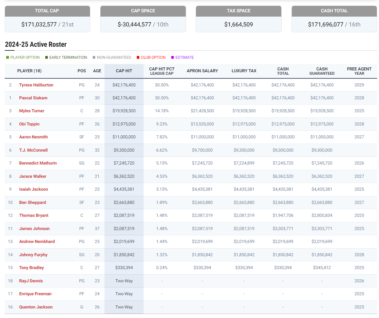 雷霆的总决赛对手步行者24-25赛季薪资总计1.71亿排在联盟第21位,换言之这两支球队都是支出有限的“寒门”。